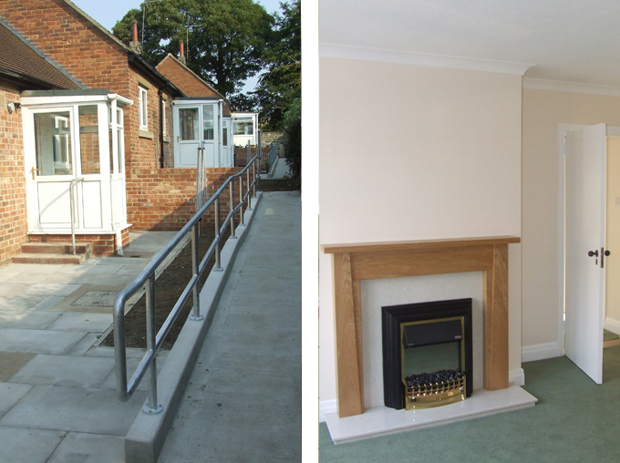 The Works included thermal insulation to all external walls; new electric heating throughout; upgrading insulation to lofts; the provision of new double-glazed windows, and new external doors; new wetrooms; the enlargement and replacement of Kitchens; and, replacement of all floor coverings, and decoration. Externally, paths were re-laid and new ramps provided allowing Residents free movement around the gardens.