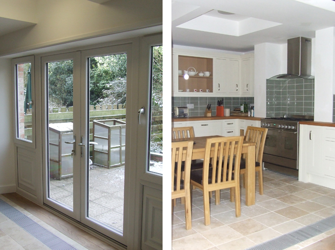 A project to convert the basement of a 1930’s residence into a sunlit west facing kitchen and dining area, with extensive west facing glazing, and doors opening onto a garden terrace. This allowed for accommodation elsewhere in the property to revert to its original use as living space. The scheme posed particular technical challenges, not least the necessary structural alterations, including underpinning of an adjacent party wall due to the steeply sloping site. We provided architectural services from inception to completion including the submission of Planning and Building Control Applications, the serving of a Party Structure Notice and, Contract Administration services.